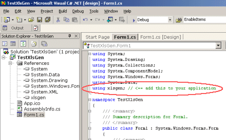 The following screen captures will show you how to create a Windows C# application that takes advantage of xlsgen.